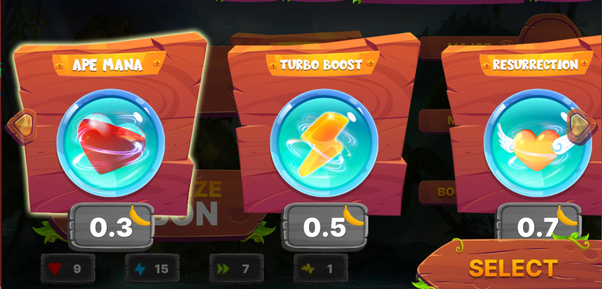 Jungle Boosts are consumables which can be bought at the beginning of each game session to confer additional powers to your character.
